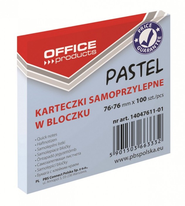 Karteczki samoprzylepne pastel niebie. 76 x 76 mm