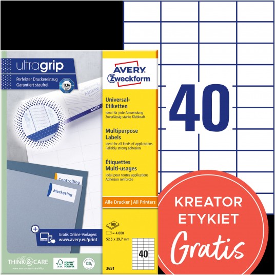 Etykiety uniwersalne Avery Zweckform Ultragrip 52,