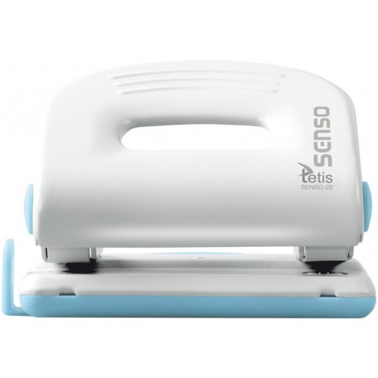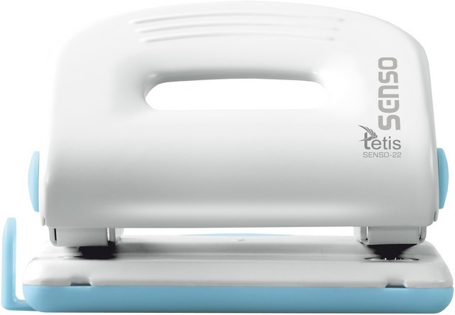 - metalowy dziurkacz biurowy z wykończeniami z tworzywa sztucznego