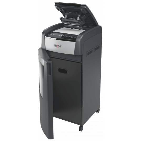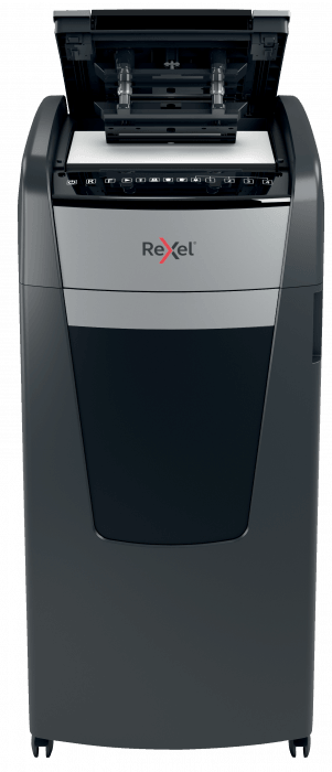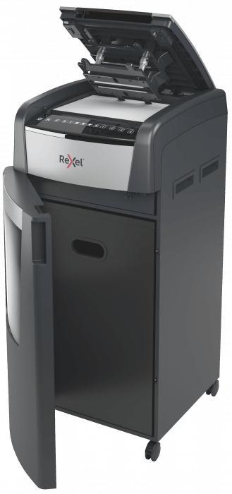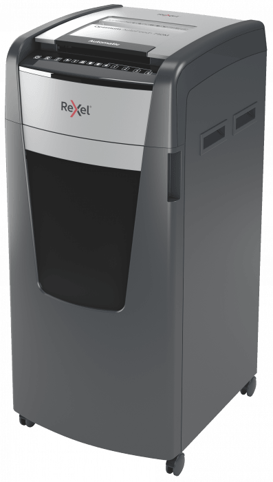 - jednorazowo niszczy automatycznie do 750 kartek A4 (80 gsm), tnąc arkusze na mikrościnki (o wymiarach 2 x 15 mm), co zapewnia poziom bezpieczeństwa P-5