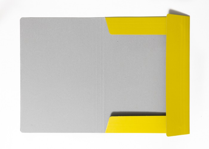 Teczka z gumką została wykonana z grubego makulaturowego kartonu 300 g/m2, jednostronnie barwionego i lakierowanego.